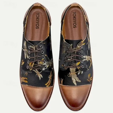 Men’s Premium Cowhide Leather Oxford Shoes with Vintage Dragonfly Embroidery – Perfect for Formal Events and Special Occasions 2025