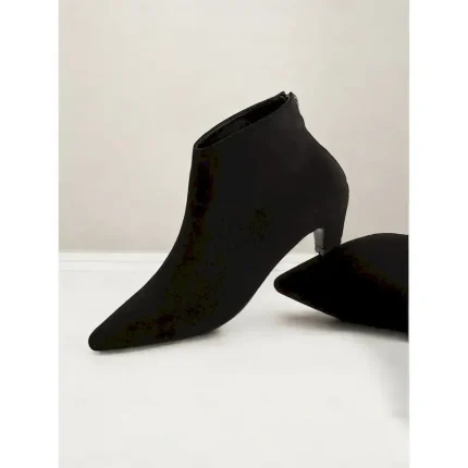 Women’s Black Pointed-Toe Ankle Boots with Kitten Heel – Elegant and Versatile Footwear for All Seasons 2025