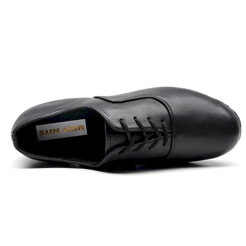 Flexible Black Faux Leather Jazz Dance Shoes for Men – Soft Sole, Lightweight, and Comfortable Performance Footwear 2025