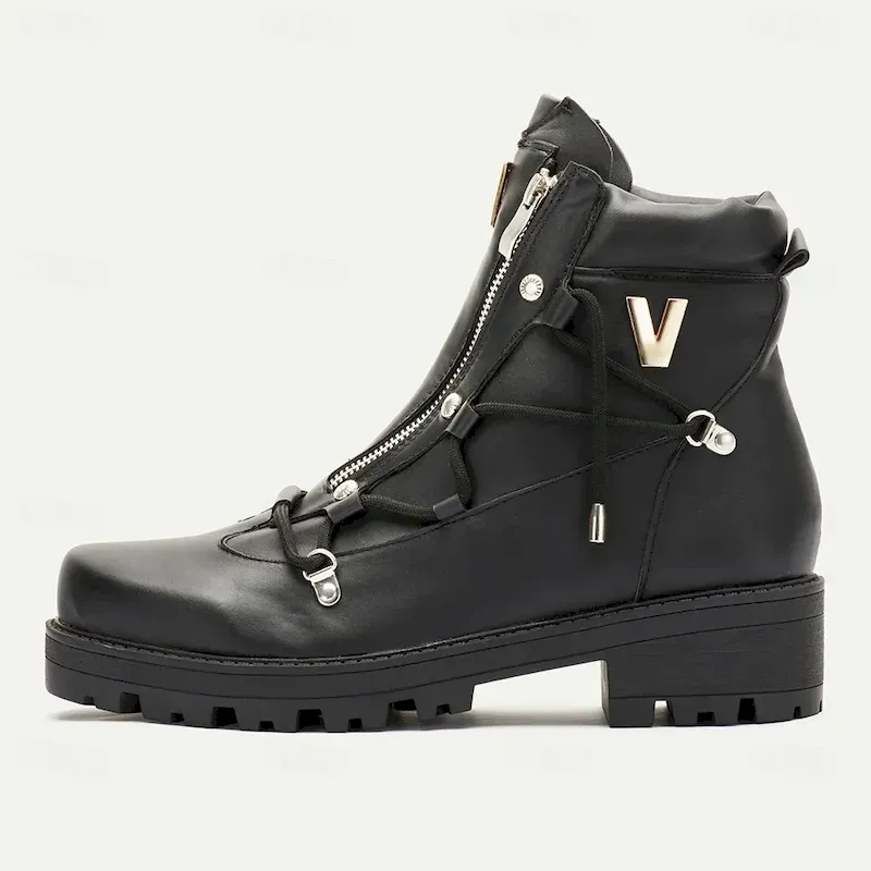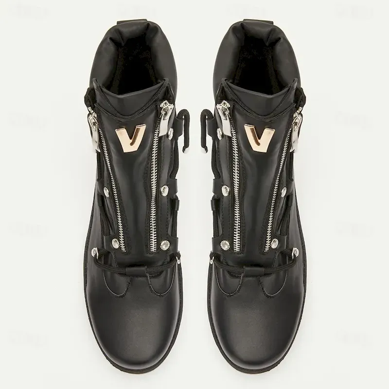 Men’s Black Motorcycle Boots with Zipper and Metal Detailing for Urban and Casual Style 2025
