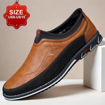 Men’s Casual Slip-On Loafers – Brown and Black Breathable Leather Shoes for Everyday Wear 2025