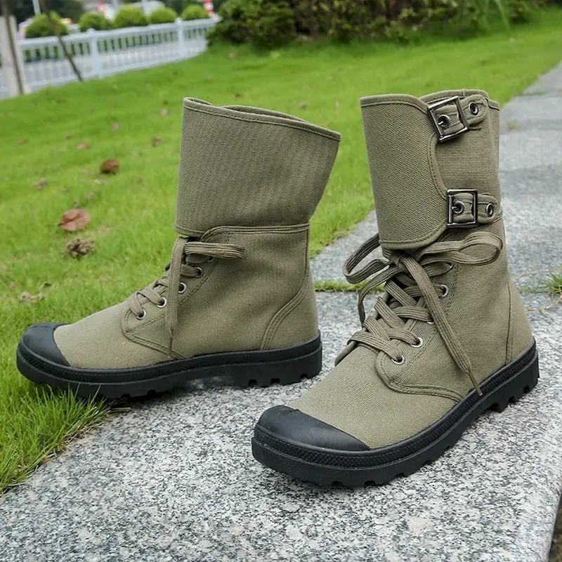 SKU: Mens-Green-Canvas-Combat-Boots-with-Buckle-and-LaceUp-Closure-–-Durable-Outdoor-Hiking-and-Military-Style-Boots-2025 Categories: , Tags: ,