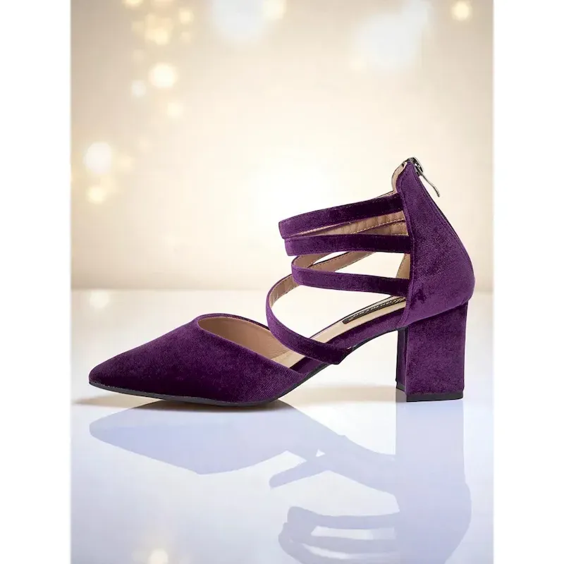 Women’s Blue Velvet Pointed Toe Block Heel Pumps with Multi-Strap Design – Elegant Cocktail Party and Formal Occasion Shoes 2025