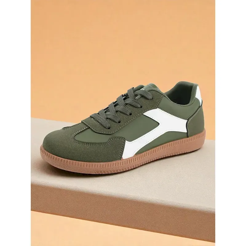 Women’s Green Lace-Up Sneakers – Retro-Inspired Casual Trainers with White Contrast Detail for Walking, School and Daily Errands 2025