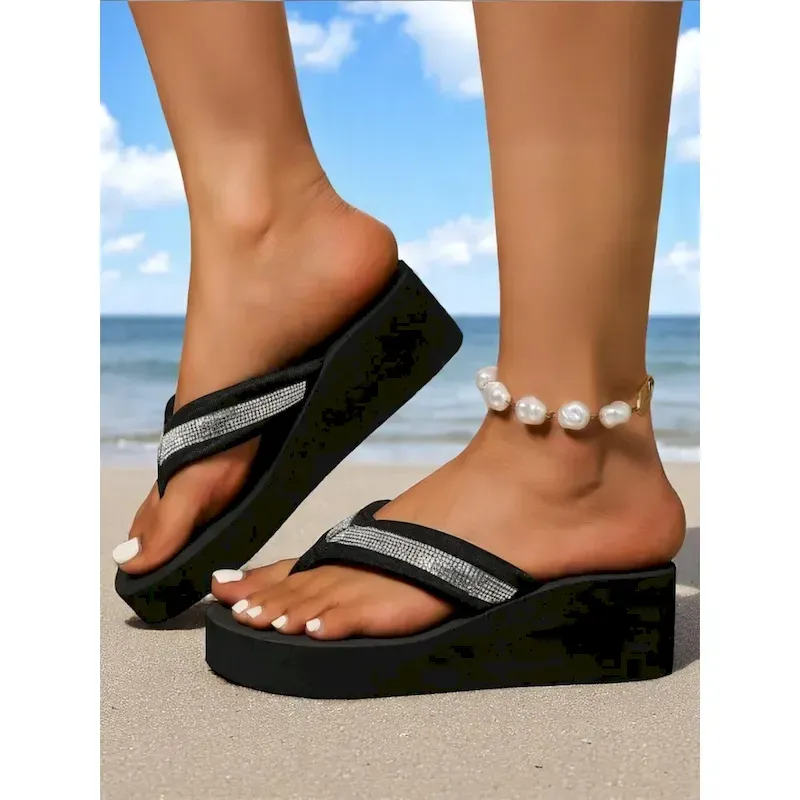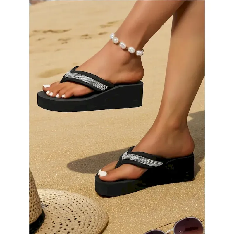 Women’s Platform Flip-Flop Sandals with Rhinestone Straps – Comfy Beach Thong Sandals for Vacation & Summer Wear 2025